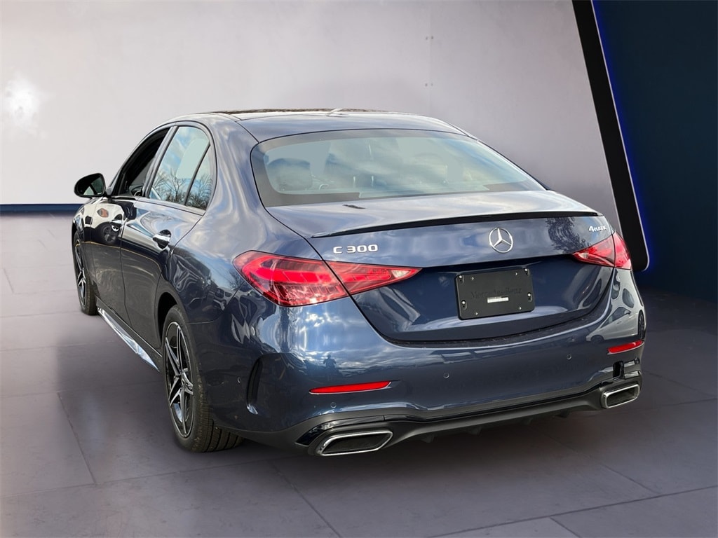 CARFAX One-Owner. Clean CARFAX. Certified. Twilight Blue Metallic 2024 Mercedes-Benz C-Class C 300 4MATIC® 4MATIC® 9-Speed Automatic 2.0L I4 Turbocharged Mercedes-Benz Certified Pre-Owned, Former Executive Loaner, Blind spot monitor, C 300 4MATIC®, 4D Sedan, 2.0L I4 Turbocharged, 9-Speed Automatic, 4MATIC®, Twilight Blue Metallic, Black w/MB-Tex Upholstery, 11.9" Center Touchscreen Display, Alloy wheels, AMG® Body Styling, AMG® Line Exterior, AMG® Line w/Night Package, Apple CarPlay®/Android Auto®, Burmester® 3D Surround Sound System, Exclusive Trim Package, Exterior Parking Camera Rear, GUARD 360, Heated Steering Wheel, Illuminated Door Sills, MB Navigation, MB-Tex Dashboard, Music Streaming, Navigation System, Night Package, Panorama Sunroof, Perforated Brake Discs, Sound Personalization, Sport Suspension w/Sport Steering System, Star Grille, Surround View System, Wheels: 18" AMG® 5-Spoke w/Black Accents.