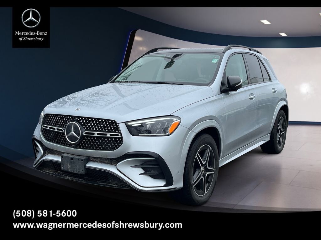 CARFAX One-Owner. Clean CARFAX. Certified. Cirrus Silver Metallic 2025 Mercedes-Benz GLE GLE 350 4MATIC® 4MATIC® 9-Speed Automatic 2.0L I4 Turbocharged Mercedes-Benz Certified Pre-Owned, Blind spot monitor, GLE 350 4MATIC®, 4D Sport Utility, 2.0L I4 Turbocharged, 9-Speed Automatic, 4MATIC®, Cirrus Silver Metallic, Bahia Brown/Black w/MB-Tex Seat Trim, Active Distance Assist DISTRONIC®, Active Lane Change Assist, Active Lane Keeping Assist, Active Speed Limit Assist, Active Steering Assist, Alloy wheels, AMG® Line Body Styling, AMG® Line Exterior, Apple CarPlay®/Android Auto®, Black Roof Rails, Bumester Surround Sound System w/Dolby Atmos. Burmester is a registered trademark of Burmester Audiosysteme GmbH, Berlin, Germany., Driver Assistance Package, Exclusive Trim, Extended Restart in Stop & Go Traffic, Heated Front Seats, Heated Steering Wheel, Heated Washer System, High-Gloss Black Elements, Increased Towing Capacity, Music Streaming, Navigation system: MBUX, Night Package, Panorama Power Tilt/Sliding Sunroof, Perforated Brake Discs, Power Front Seats, Route-Based Speed Adaptation, Sound Personalization, Trailer Hitch, Ventilated Front Seats, Wheels: 20" AMG® 5-Spoke w/Black Accents, Winter Package.