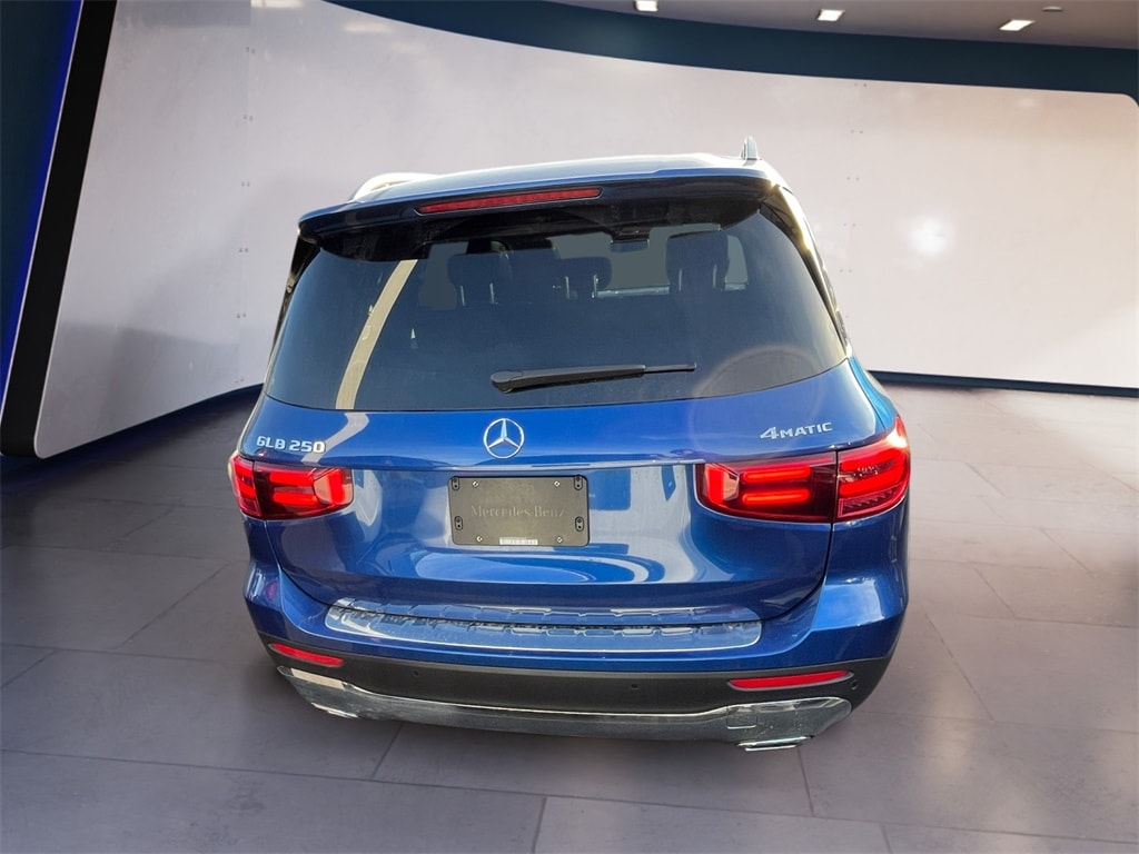 CARFAX One-Owner. Clean CARFAX. Certified. Starling Blue Metallic 2025 Mercedes-Benz GLB GLB 250 4MATIC® 4MATIC® 8 Speed Dual Clutch 2.0L I4 Turbocharged Mercedes-Benz Certified Pre-Owned, Former Executive Loaner, Blind spot monitor, Bumester Surround Sound System w/Dolby Atmos. Burmester is a registered trademark of Burmester Audiosysteme GmbH, Berlin, Germany., GLB GLB 250 4MATIC®, 4D Sport Utility, 2.0L I4 Turbocharged, 8 Speed Dual Clutch, 4MATIC®, Starling Blue Metallic, Black Leatherette, Active Distance Assist DISTRONIC®, Advanced Sound System, Alloy wheels, Apple CarPlay®/Android Auto®, Door Sills w/Mercedes-Benz Lettering, Exclusive Package, Exterior Parking Camera Rear, Heated front seats, Heated Steering Wheel, Heated Windshield Washer Fluid, MB Navigation, MBUX Augmented Reality for Navigation, Music Streaming, Navigation System, Panorama Roof, Power Liftgate, Wheels: 19" AMG® Twin 5-Spoke w/Black Accents, Winter Package.
