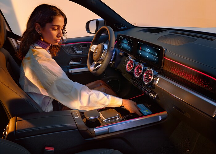 The interior of the 2023 Mercedes-Benz EQB 250 is a true representation of 2023 Mercedes-Benz luxurious design language, with premium materials and a modern, sleek look. The cabin offers ample space for passengers and cargo, with comfortable and supportive seats that provide excellent visibility. The dashboard is elegantly designed with physical buttons and touch-sensitive controls for various functions.