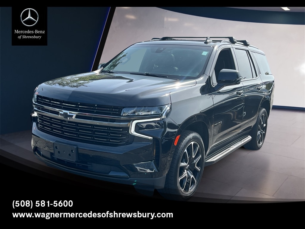 Clean CARFAX. Black 2021 Chevrolet Tahoe RST 4WD 10-Speed Automatic with Overdrive EcoTec3 5.3L V8 Tahoe RST, 4D Sport Utility, EcoTec3 5.3L V8, 10-Speed Automatic with Overdrive, 4WD, Jet Black/Victory Red Leather, 1st & 2nd Row Color-Keyed Carpeted Floor Mats, 2 USB Data Ports, 2nd Row Pwr Release 60/40 Split-Folding Bench Seat, 3rd Row 60/40 Power-Folding Split-Bench Seat, Auto-Dimming Inside Rear-View Mirror, Automatic Heated Steering Wheel, Bright Front & Rear Door Sill Plates, Color-Keyed Carpeting Floor Covering, Driver & Front Outboard Passenger Airbags, Driver Alert Package, Dual-Pane Power Panoramic Sunroof, Floor Console w/Storage Area, Front & Rear Park Assist, Hands-Free Rear Power Programmable Liftgate, HD Radio, HD Surround Vision, Heated 2nd Row Outboard Seats, Infotainment Display, Lane Change Alert w/Side Blind Zone Alert, Lane Keep Assist w/Lane Departure Warning, Leather-Wrapped Steering Wheel, LED Daytime Running Lamps, License Plate Front Mounting Package, Luxury Package, Memory Settings, Memory Settings for Driver, Outside Heated Power-Adjustable Mirrors, Power Liftgate, Power Tilt & Telescopic Steering Column, Preferred Equipment Group 1SP, Radio: Chevrolet Infotainment 3 Premium System, Rear Cross Traffic Alert, Rear Media & Nav Package, Rear Pedestrian Alert, Rear Seat Media System, Remote Start, SiriusXM NavTraffic, SiriusXM Radio w/360L, Universal Home Remote.